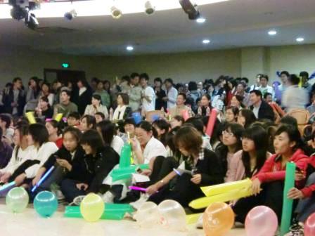 “激情世博·青春乐章”迎新晚会在大学生活动中心舞厅举行,同时也拉开了强制高潮