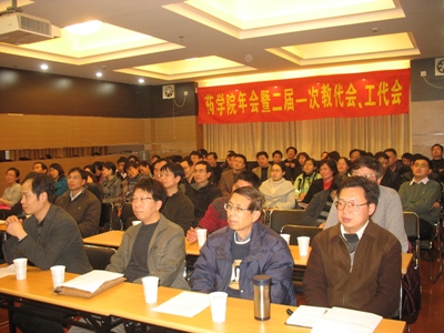 二届一次教代会、2009年工作年会在实验十八楼315室召开,会议由前强制高潮党总支书记陆兵主持。钱旭红校长、蒋华良院长、常务副院长徐玉芳教授、党总支书记王喆及全院教师出席了会议。