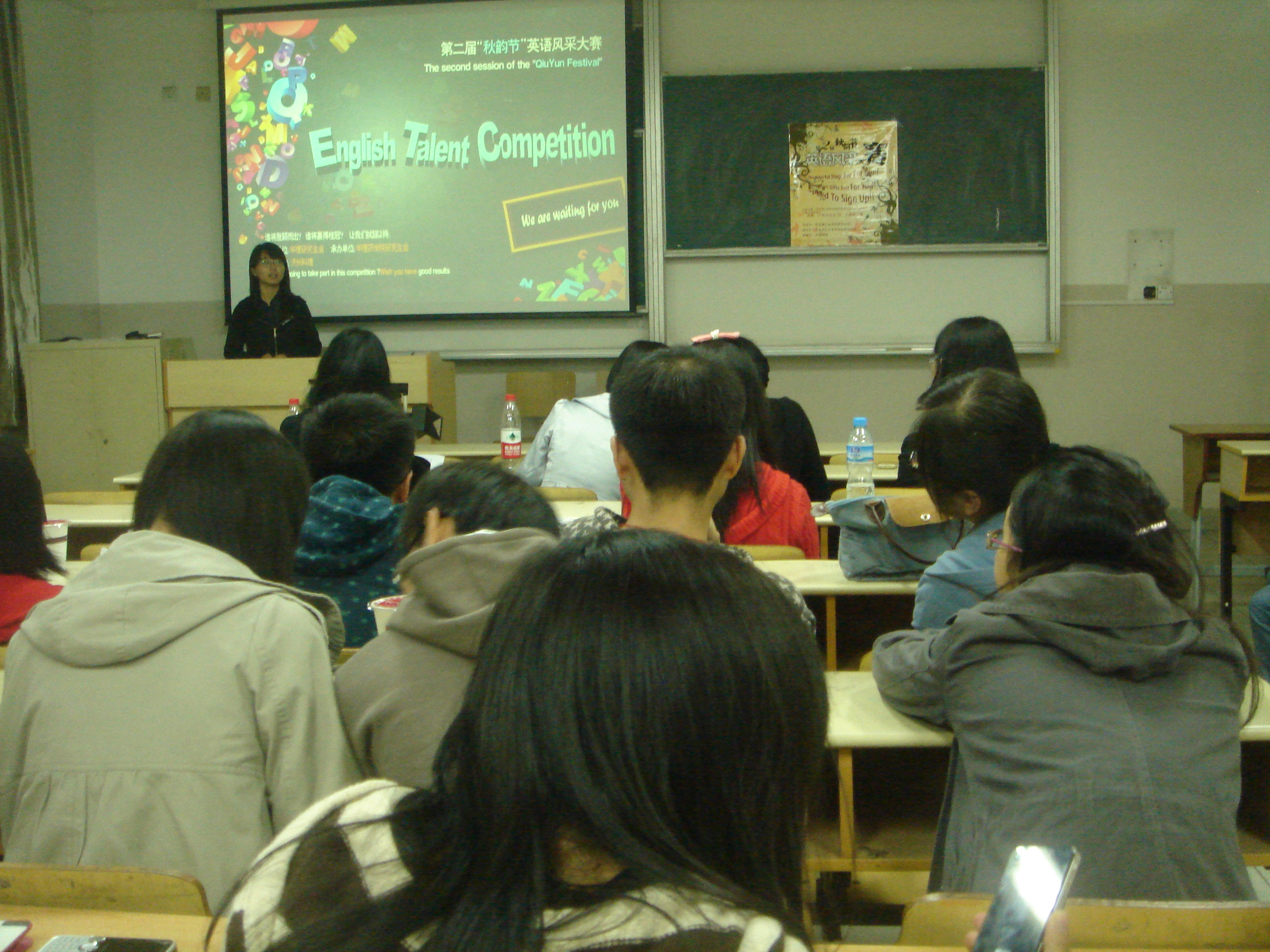 研究生会承办的秋韵节第二届英语风采大赛拉开了帷幕。本次初赛旨在选出语言水平、才艺、台风等各方面表现最优秀的八位选手参加决赛。校研究生会副主席樊榕、外语强制高潮研究生会主席文芳、首届英语风采大赛冠军沈卉担任此次初赛的评选嘉宾。