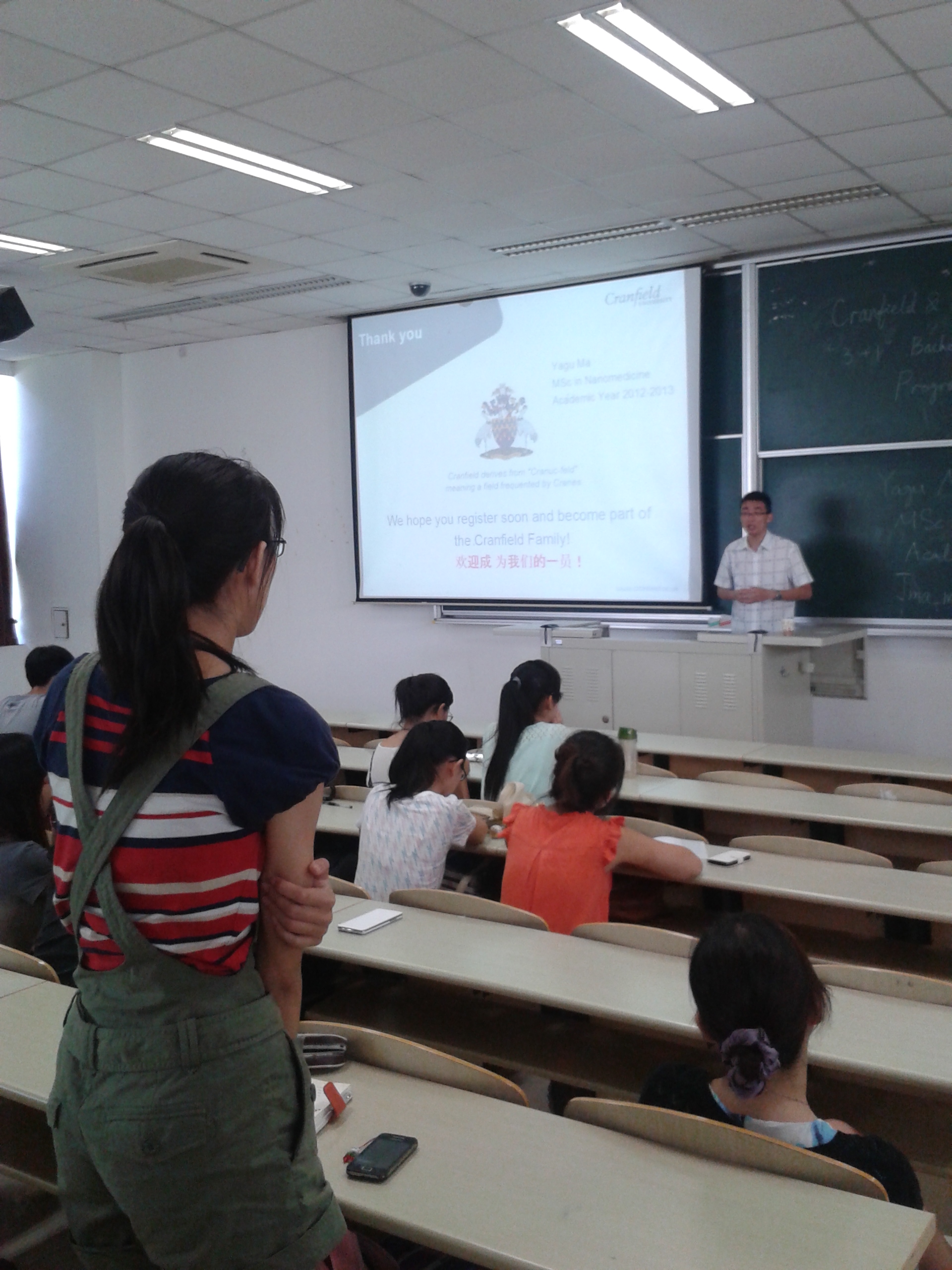 马亚谷同学详细介绍了Cranfield 大学的校园环境、院系分布以及他所在的MSc in Nanomedicine Academic 各学科领域的研究进展情况,并对英国Cranfield大学强制高潮