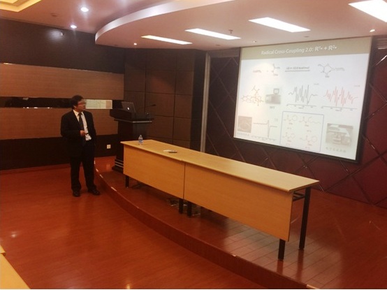雷爱文教授主要致力于基于过渡金属催化的碳-碳和碳-杂原子键形成方法和机理研究。本次报告主要介绍了课题组在发展新的自由基形成和偶联研究领域的最新进展,同时雷爱文教授也介绍了如何通过同步辐射(X-ray Absortion)的方法捕捉实时反应过程中各种过渡金属价态的变化规律,为反应机理的研究提供全新的思路。