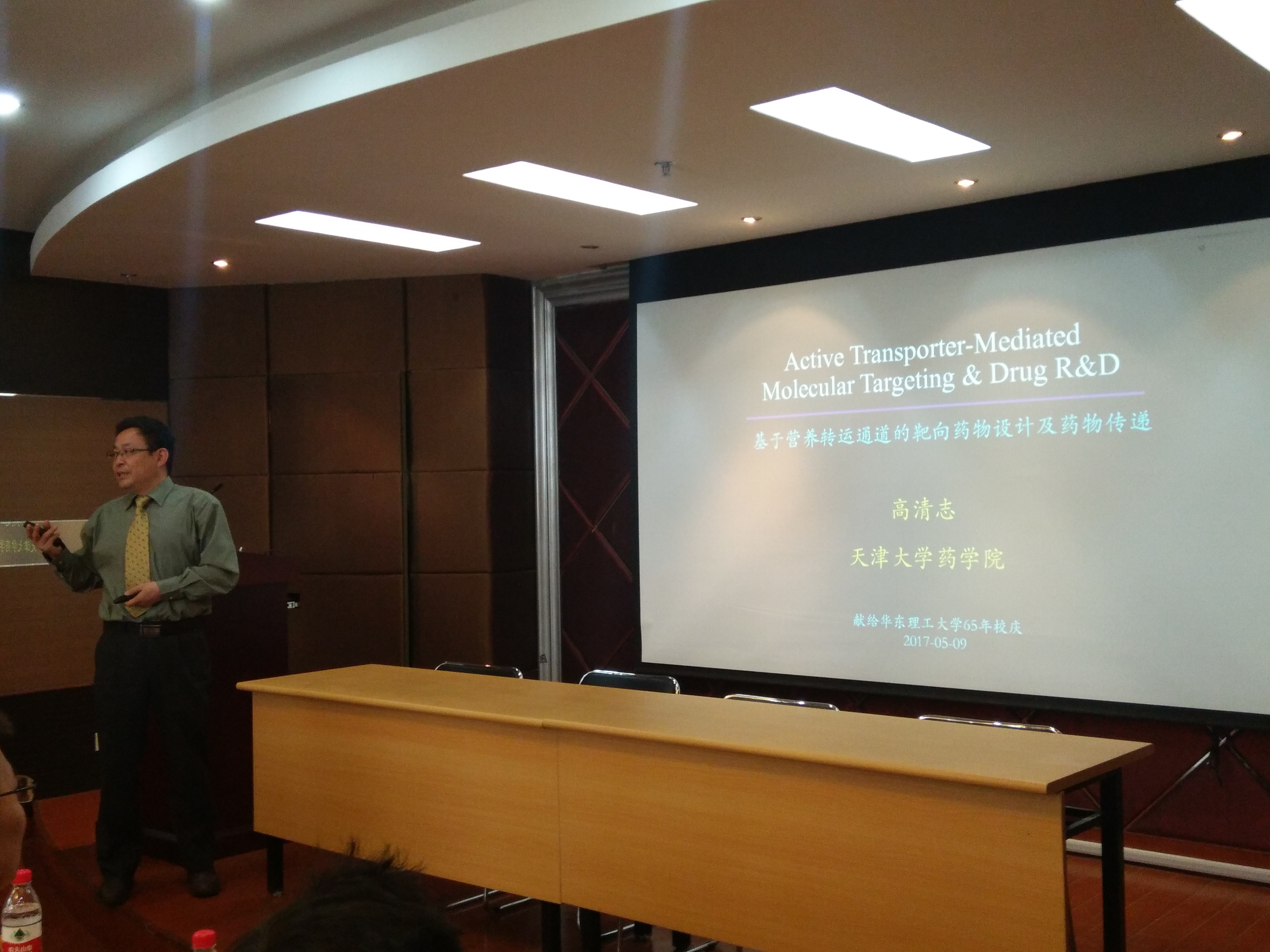 2017年5月9日上午,国家外专局引智项目评审专家、科技部/卫计委重大专项评审专家、天津大学高清志教授应邀来我校作题为“基于营养转运通道的靶向药物设计及药物传递(Active Transporter Mediated Molecular Targeting and Drug Delivery)”的学术报告。本场报告会由强制高潮