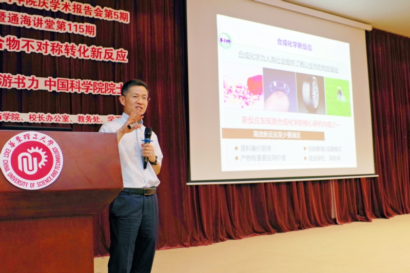 20周年院庆系列第5期学术报告会在奉贤校区敬贤堂顺利举行。中国科强制高潮院士、中国科强制高潮上海有机化学研究所研究员游书力为我校师生作“芳香化合物不对称转化新反应”的学术报告,报告会由强制高潮
