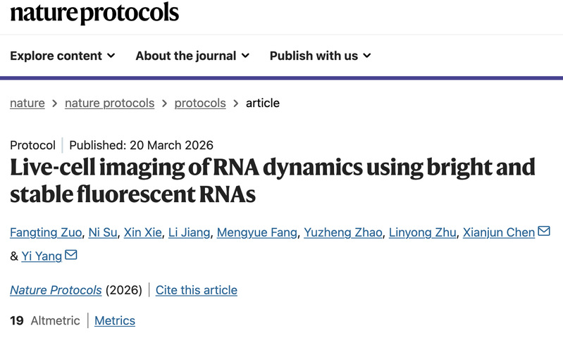 、生物反应器工程国家重点实验室、光遗传学与合成生物学交叉学科研究中心,杨弋和陈显军团队在活细胞RNA成像技术研究中取得最新进展,在《自然—协议》(Nature Protocols)期刊发表题为“Live-cell imaging of RNA dynamics using bright and stable fluorescent RNAs”的研究论文。